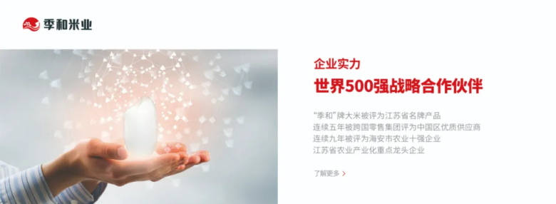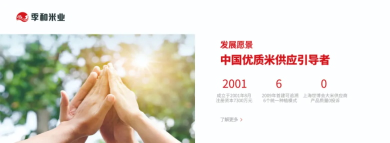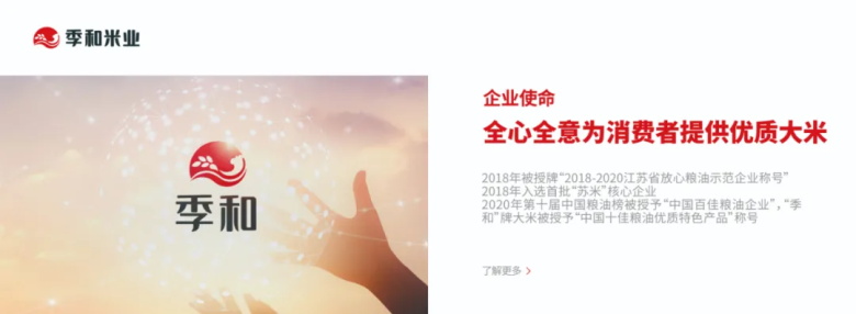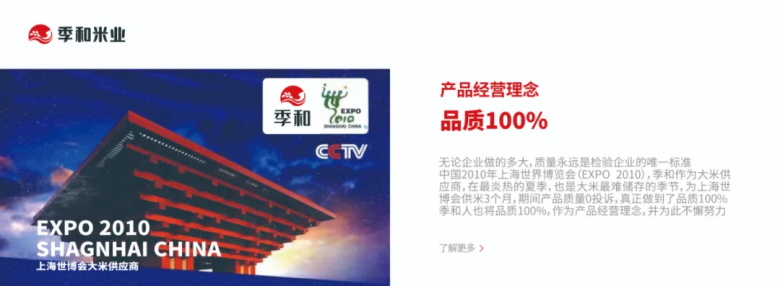 作為中國十佳糧油產(chǎn)品,上海世博會大米供應(yīng)商,季和米業(yè)與奇思深度合作,為企業(yè)進(jìn)行文化打造,品牌升級梳理。