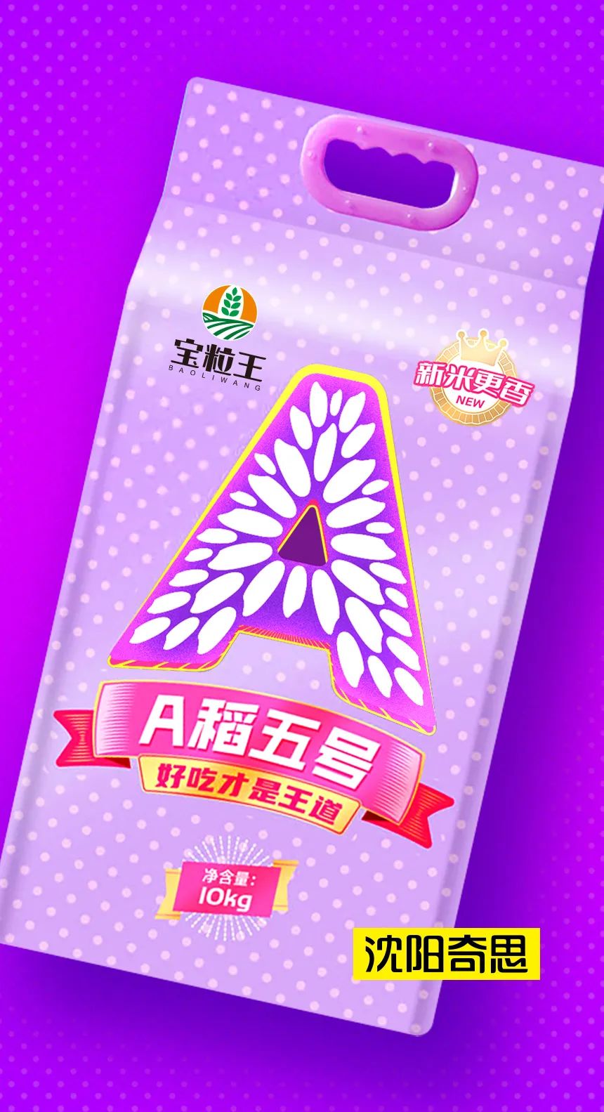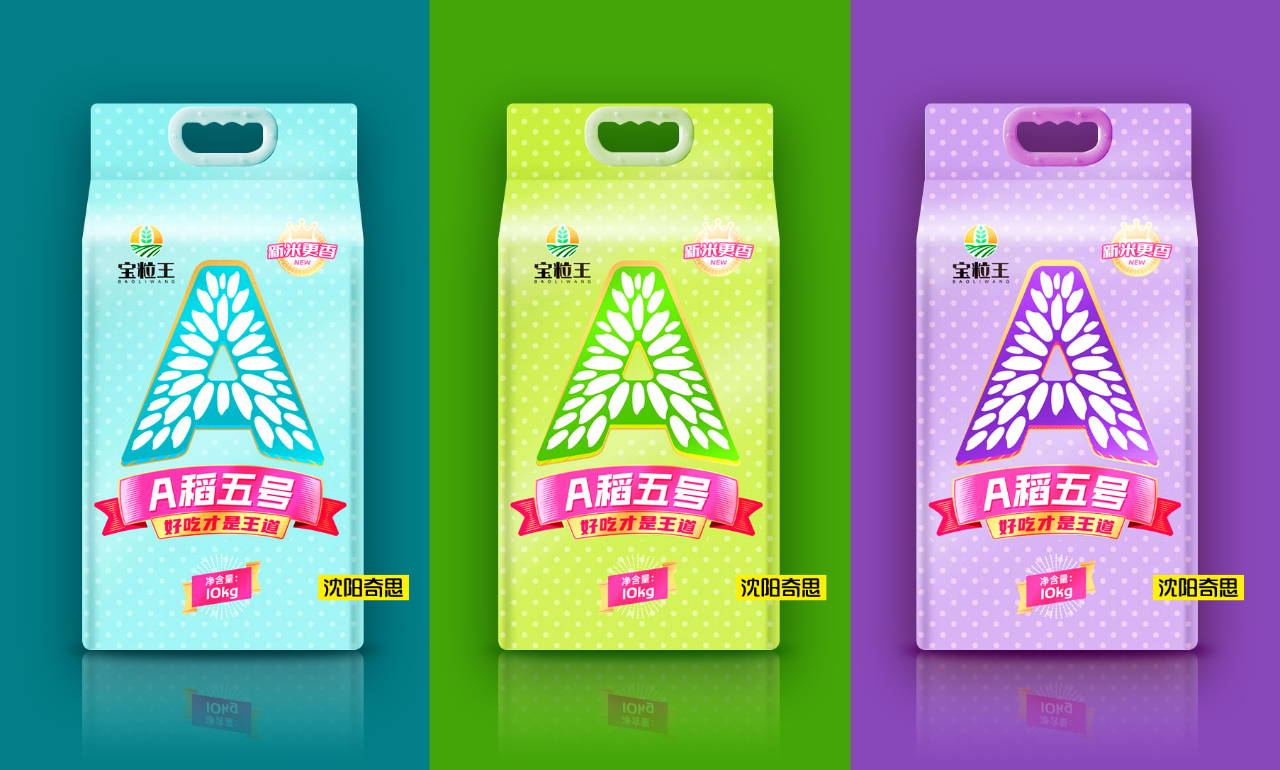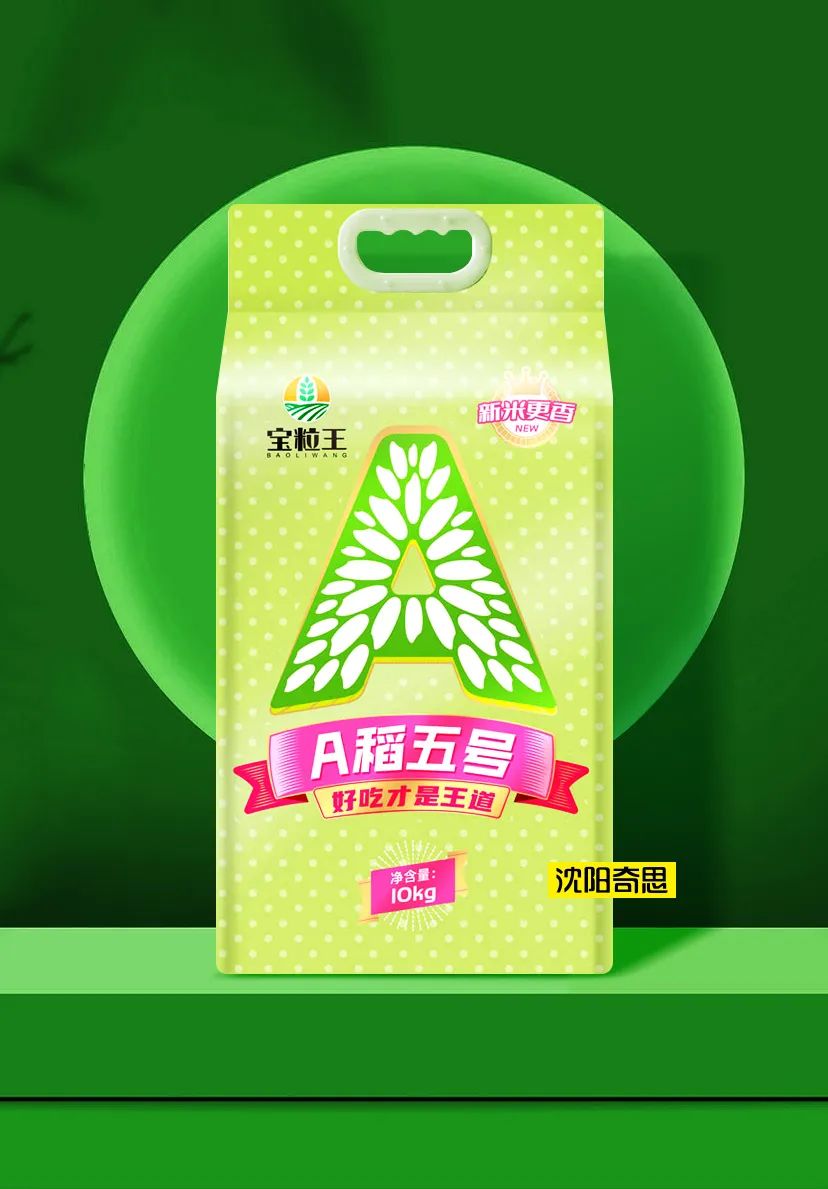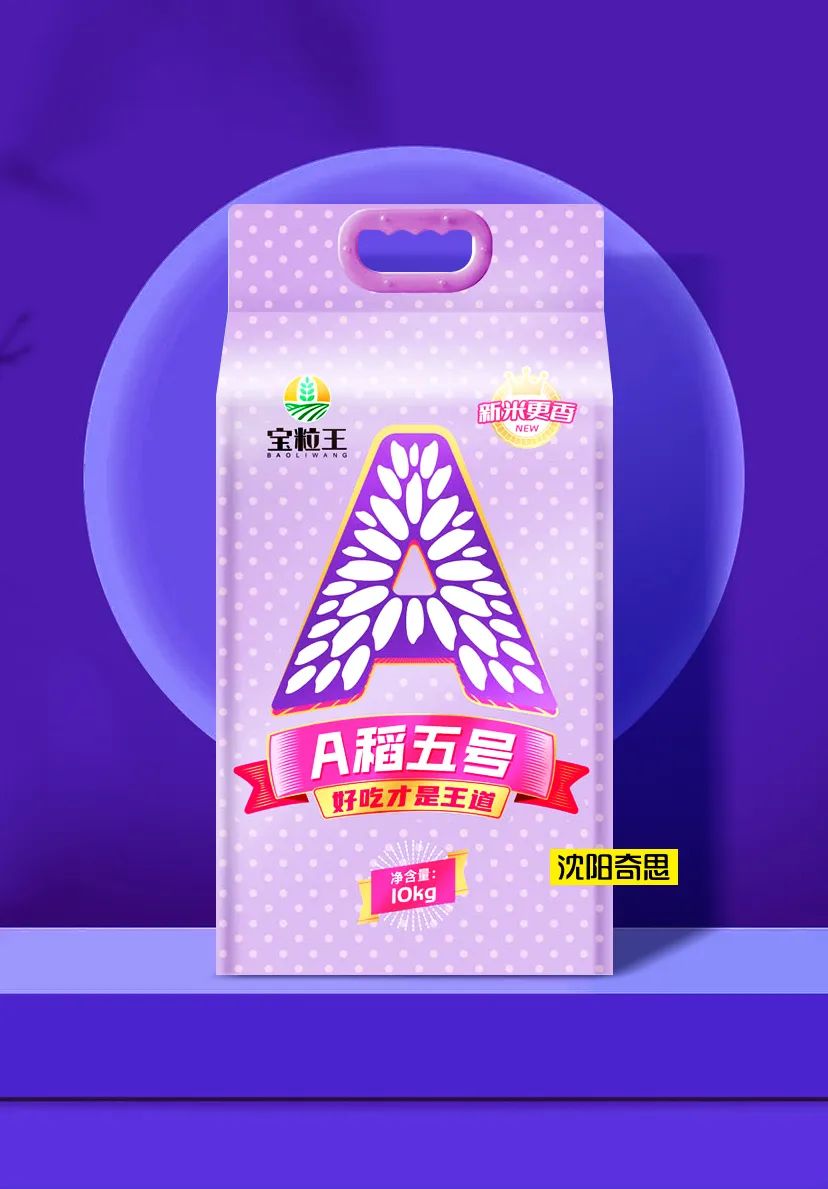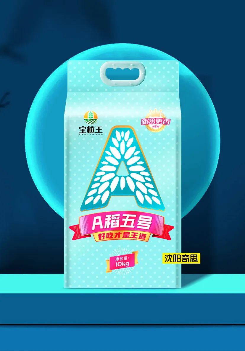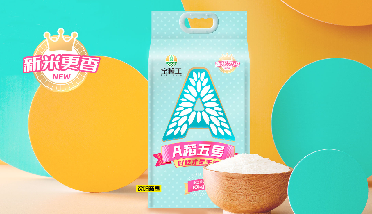 嘉興寶粒王糧油是沈陽(yáng)奇思的老客戶(hù),A稻五號(hào)是寶粒王旗下的全新子品牌。2022年,王總再次委托沈陽(yáng)奇思為其全案打造。