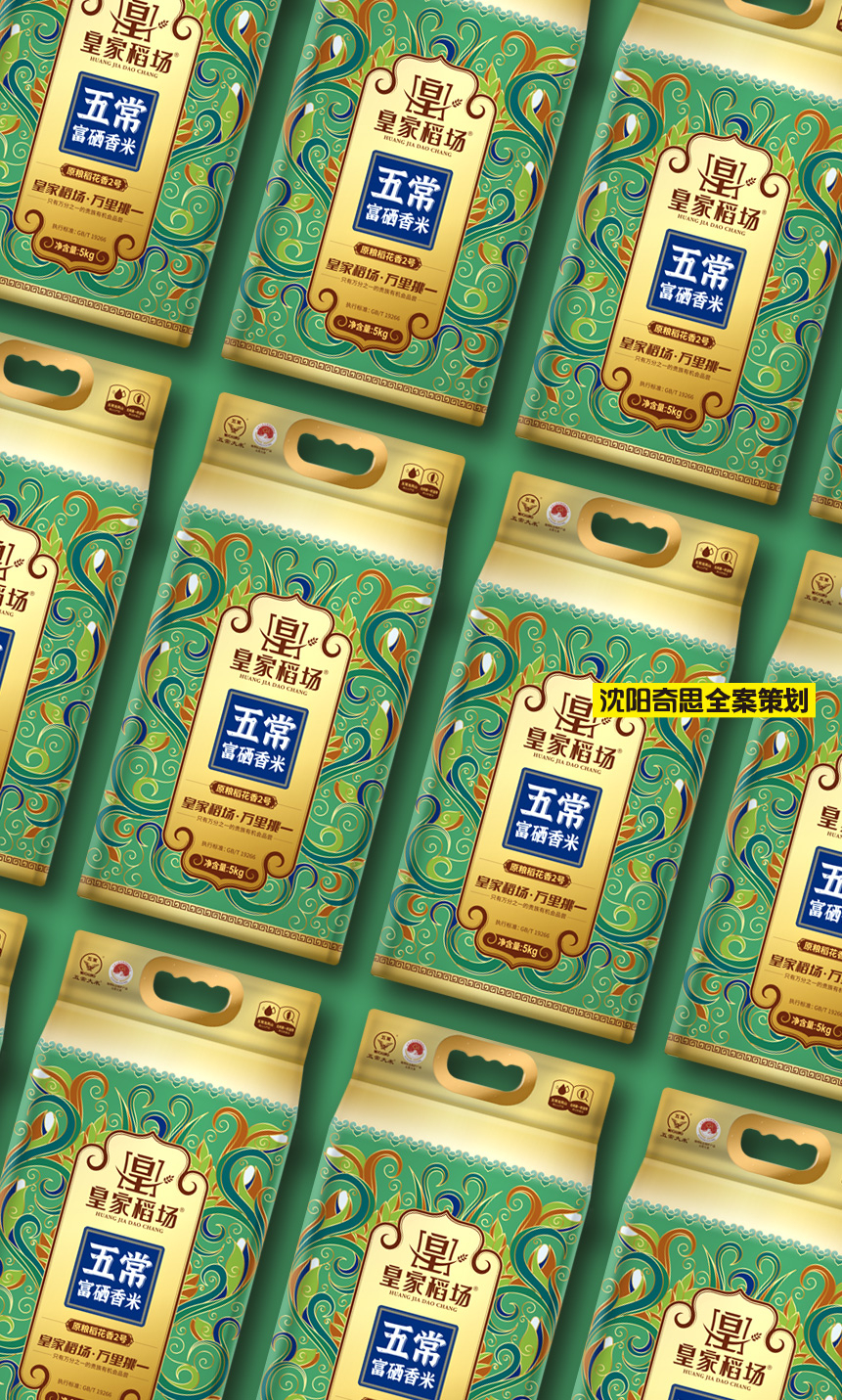 皇家稻場品牌的名字中就有自帶著一種皇家風(fēng)范,所以皇家稻場的包裝也應(yīng)該讓消費(fèi)者感受到皇家范,有那種特別貴氣的感覺。奇思借力中國國寶——景泰藍(lán),打造皇家稻場的全新包裝。