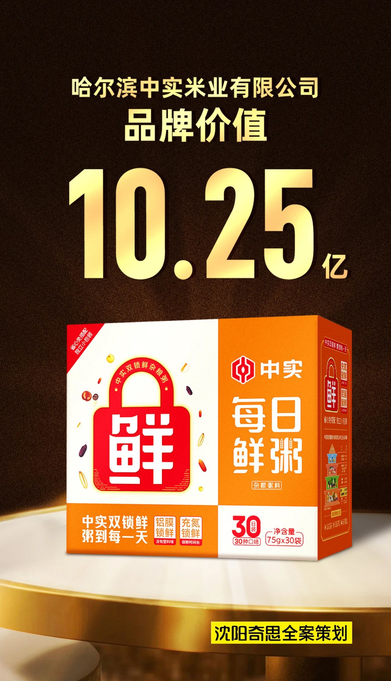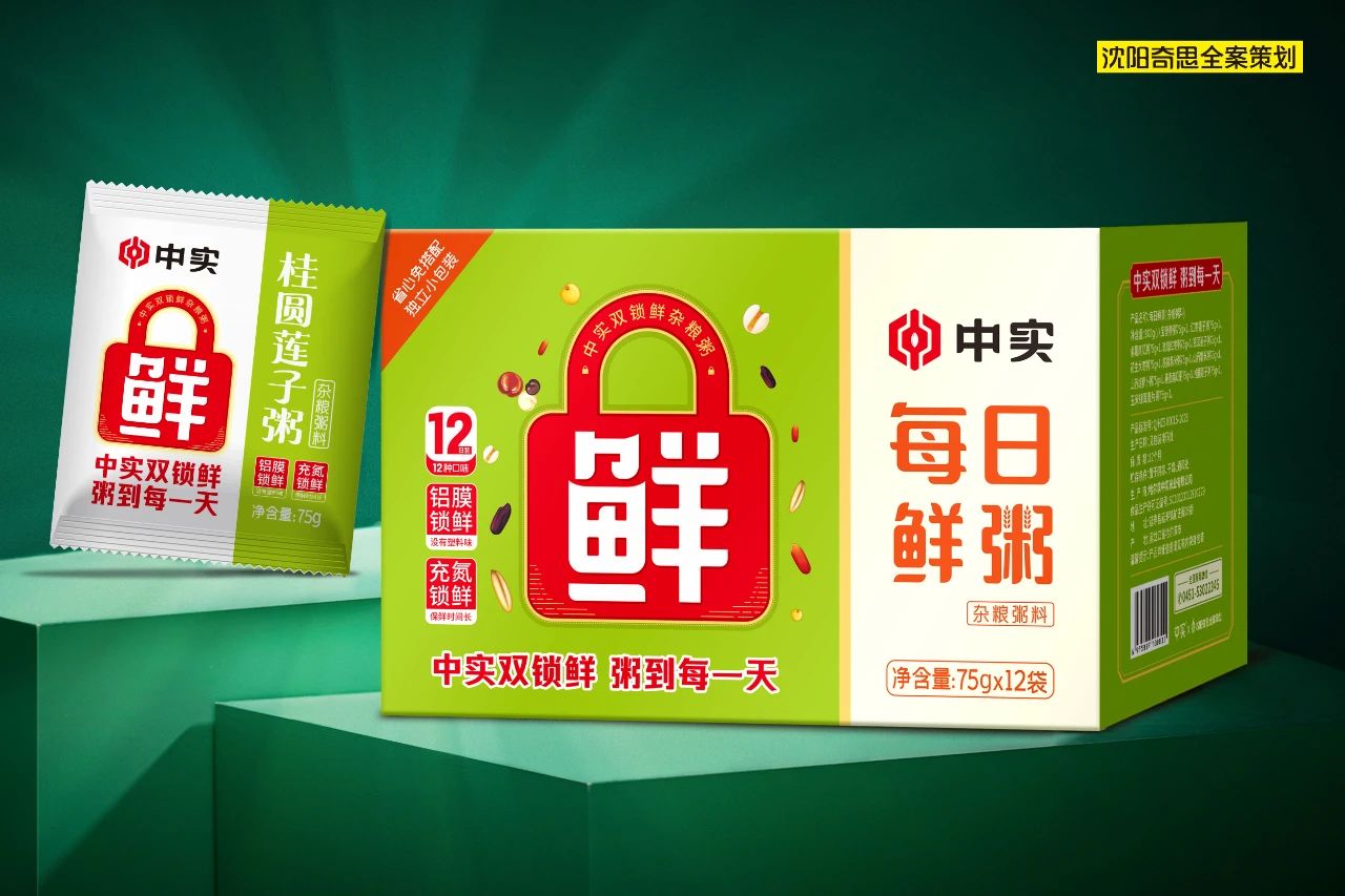 哈爾濱中實(shí)米業(yè)品牌價(jià)值10.25億元,與奇思第3次合作,打造中實(shí)雜糧粥料系列包裝。奇思策劃的“雙鎖鮮”超強(qiáng)定位,區(qū)隔市場(chǎng)競(jìng)品,為中實(shí)雜糧粥料奠定了堅(jiān)實(shí)的品牌基礎(chǔ)。