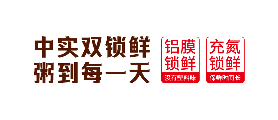 根據(jù)中實(shí)雜糧粥采用保鮮效果更好的鋁膜包材做內(nèi)袋包裝,以及在生產(chǎn)中應(yīng)用充氮保鮮工藝,兩項(xiàng)加工優(yōu)勢(shì)確保產(chǎn)品新鮮,奇思為其策劃出“雙鎖鮮”概念,與競(jìng)爭(zhēng)對(duì)手形成差異化,用“雙鎖鮮”一詞占領(lǐng)心智,策劃出中實(shí)雜糧粥的口號(hào)。